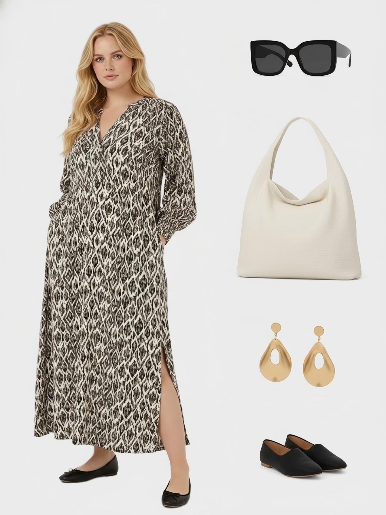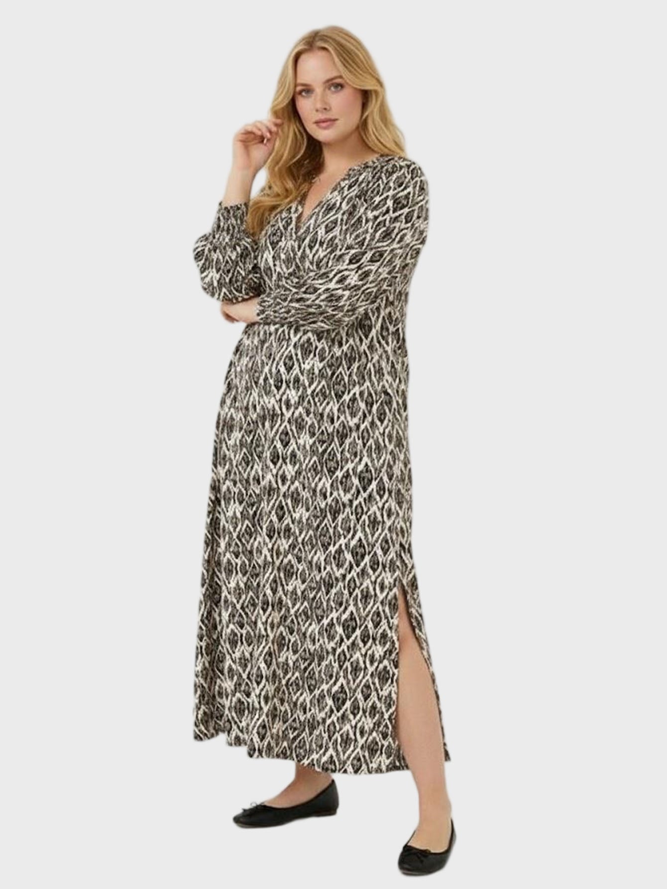 Lapa Plus Women's Abstract Geometric Print Side Slit Maxi Dress